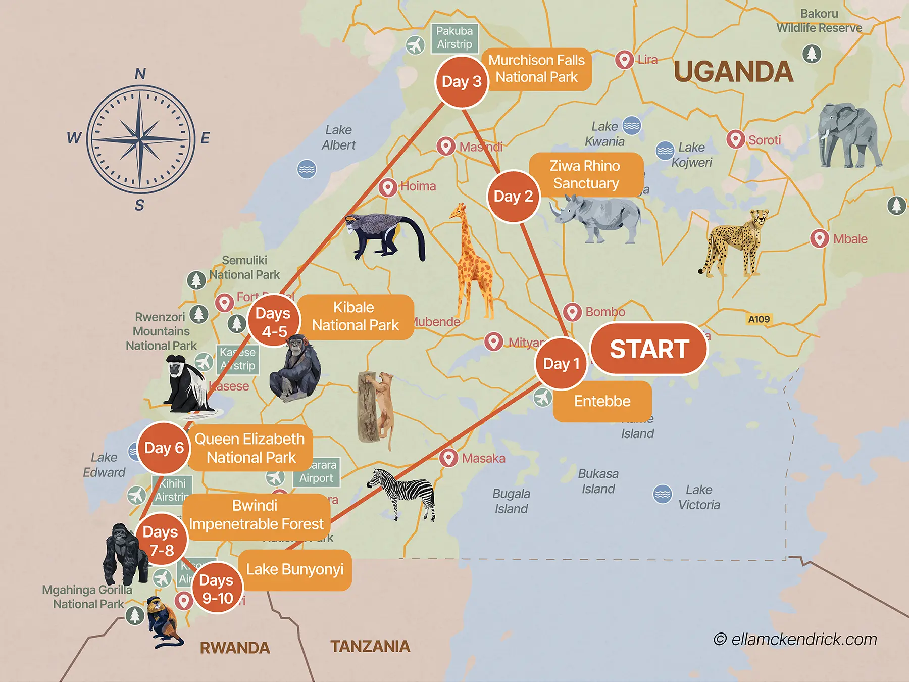 - Ugandan roads can be very bumpy and slow so consider replacing at least some drives over 4 or 5 hours with flights on safari planes if you budget permits.