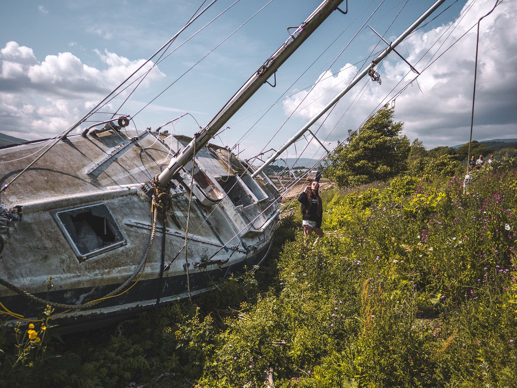 Ella McKendrick by Sailing Boat Shipwreck on Corpach Beach in Scotland