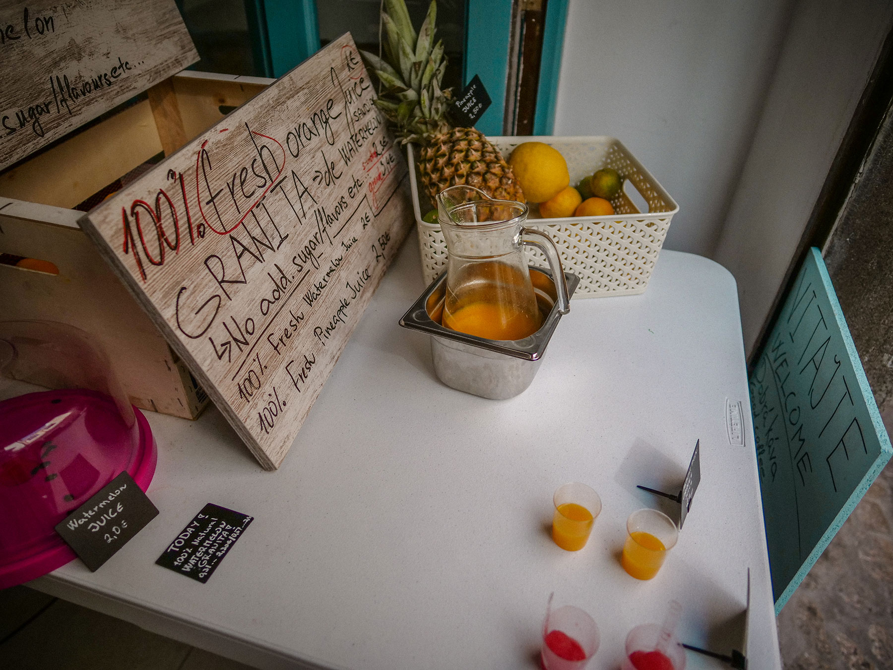 We were drawn to a little juice bar which made freshly-squeezed fruit juice using local organic fruits. Now, I may not be a fruit lover, but even I couldn’t resist giving one a try! I opted for a pineapple and lemon drink.