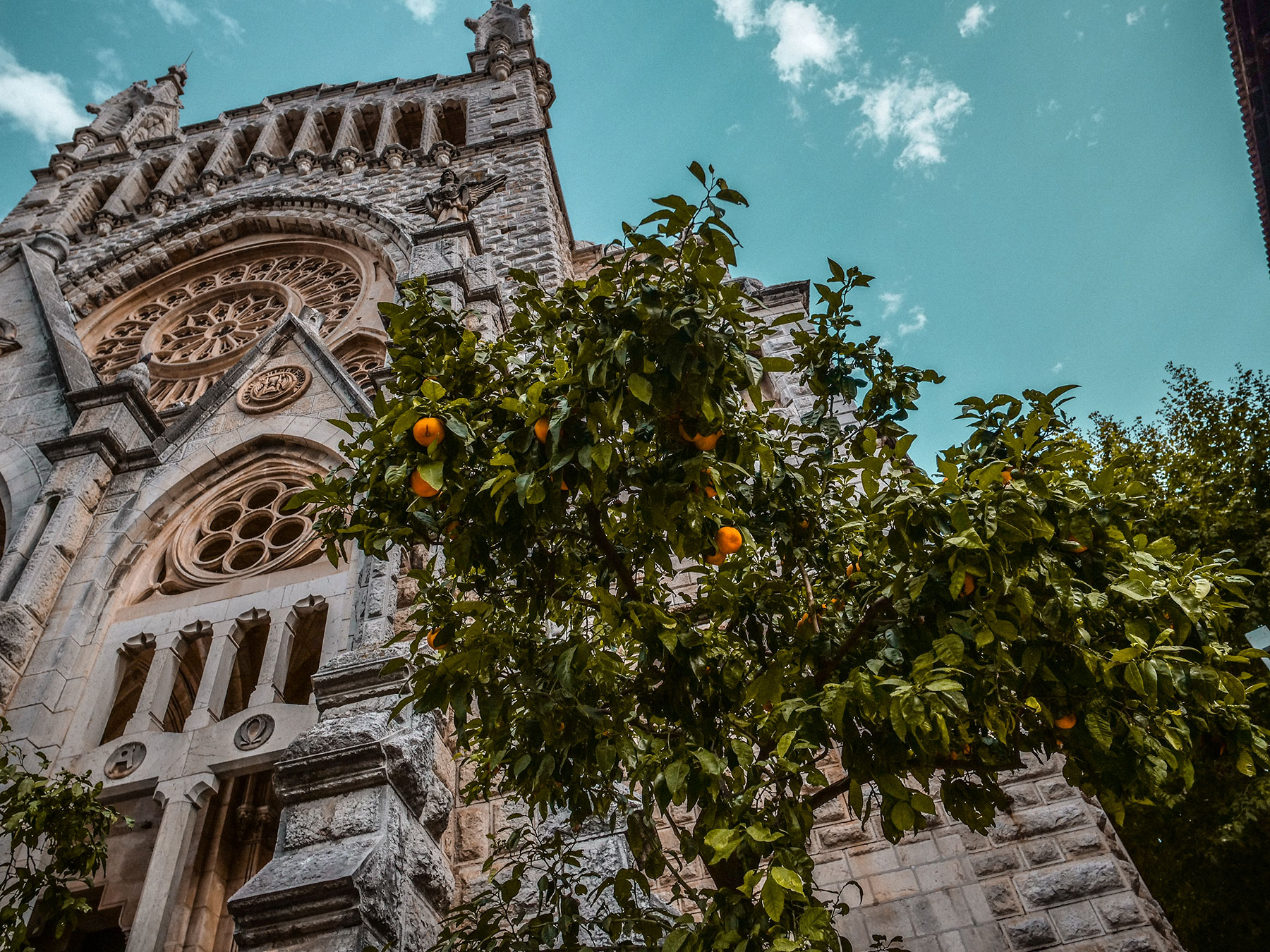 In the main square lies the beautiful Church of Sant Bartomeu, Sóller which even has orange trees outside it, a true symbol of Sóller.