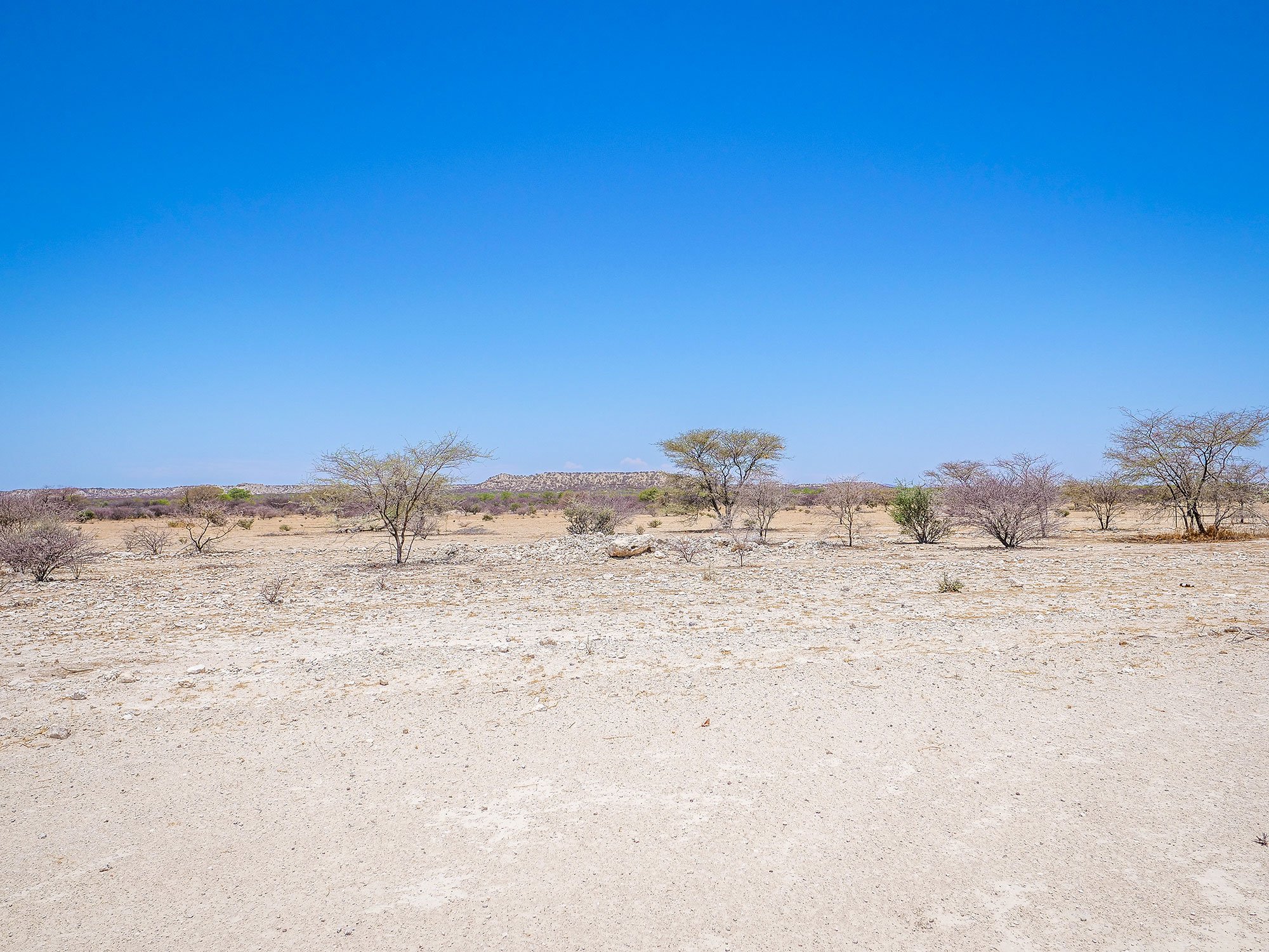 Driving through desert and savannah in Damaraland in Namibia, Africa