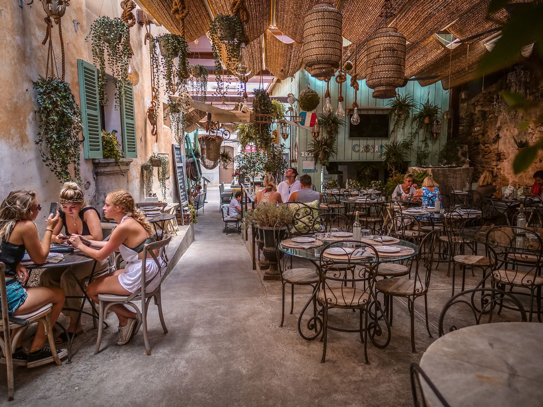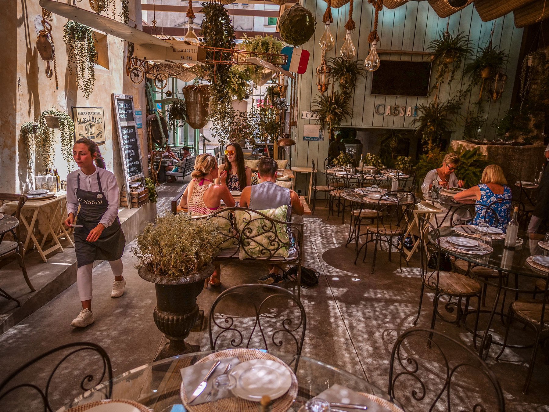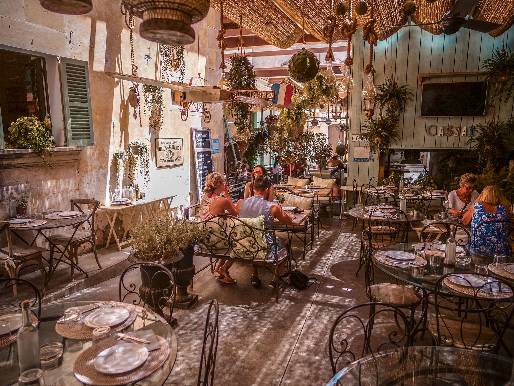 Our stomachs led us to Cassai Gran Cafe and Restaurant, a vibrant turquoise building which is rustically decorated. The restaurant itself is within a Mallorcan house that is over 300 years old. Whilst the front of the restaurant is more modern, as you step inside, you can instantly see the vintage stone walls encasing the courtyard. Decorated with various plants, the restaurant screams ‘Instagrammable’, providing the backdrop for photos.