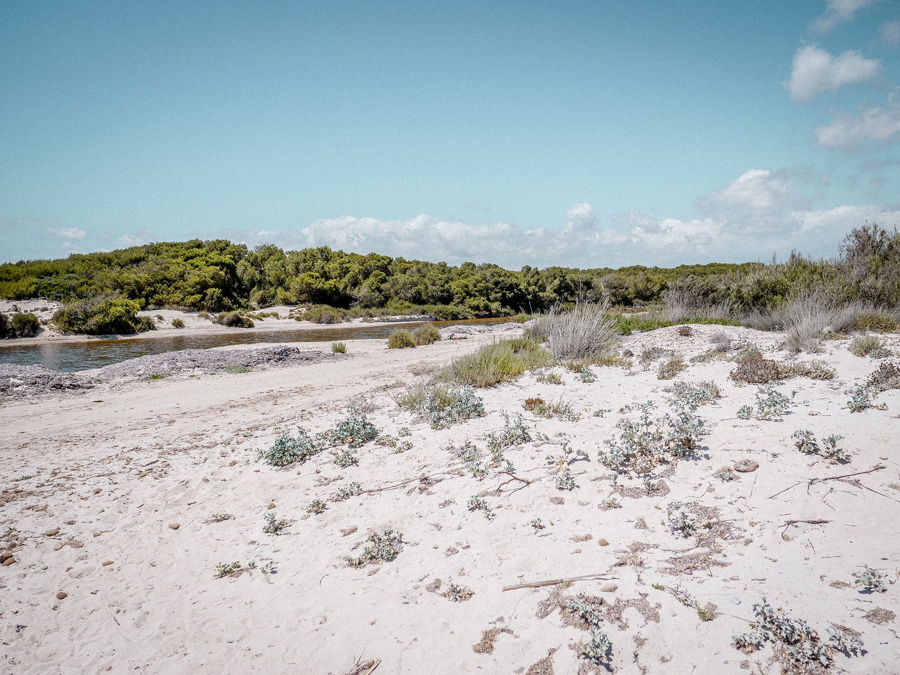 From the car park, it was around a 5 minute walk through some thick sand down to the beach. Sand dunes arose on all sides and a murky river appeared on our right, backed by a forest of green.