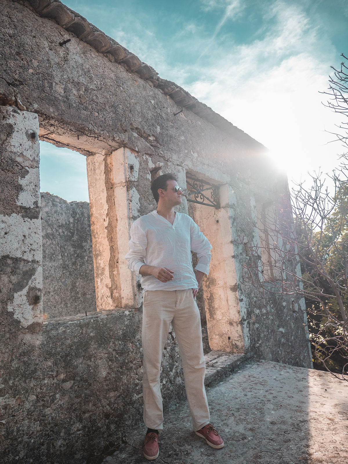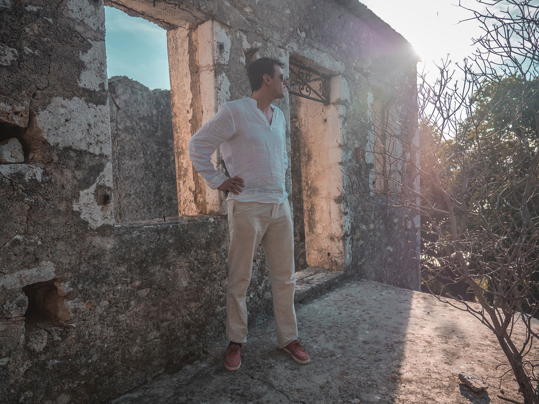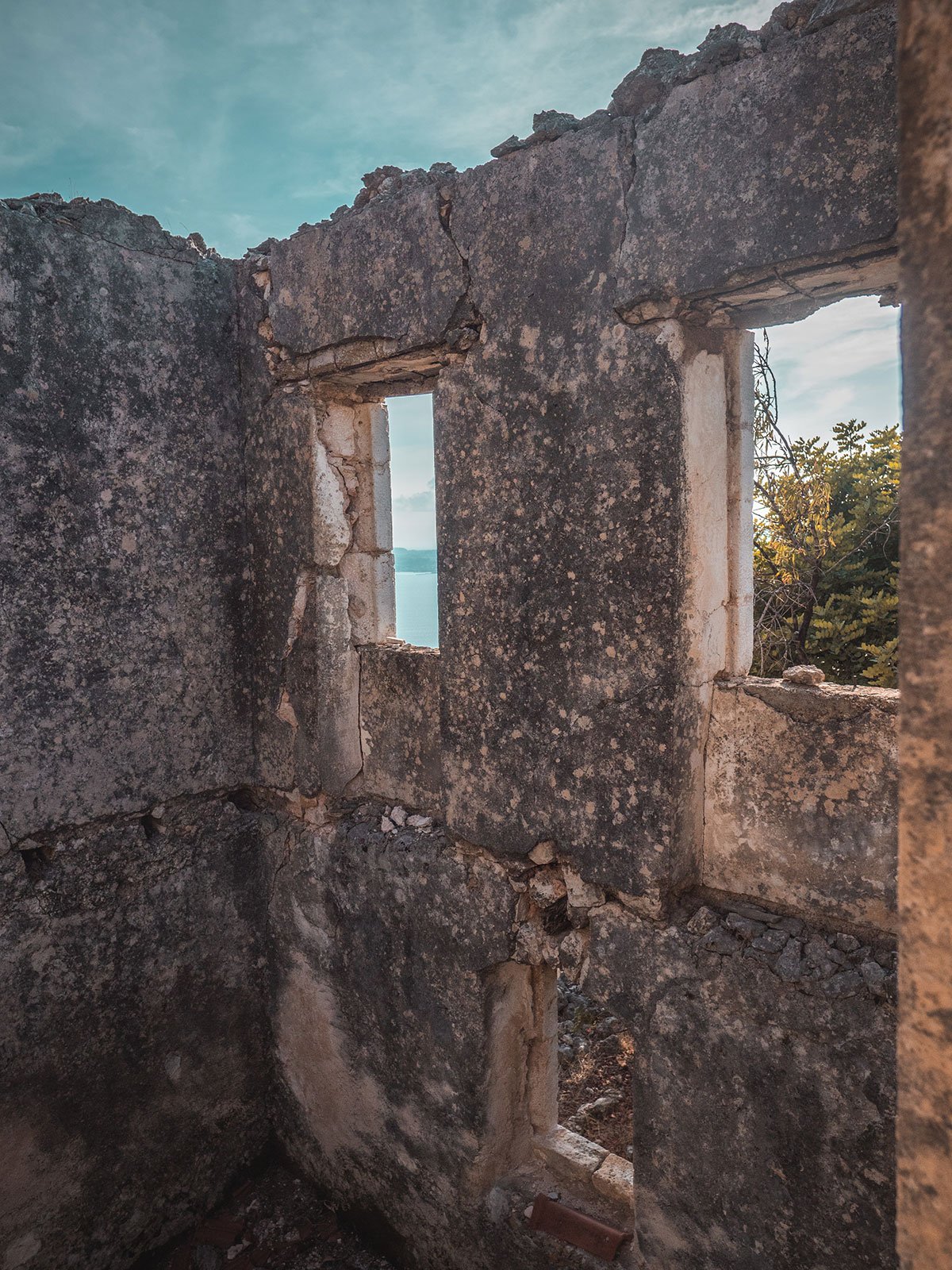After turning into a feast for mosquitos whilst exploring the ruins of a row of grand houses in Assos town, Lewis and I had been keen to continue our Indiana Jones-like adventures and explore more derelict areas in Kefalonia. The island was rife with them after a 7.2 magnitude earthquake shook the island in 1953 and flattened nearly all buildings.