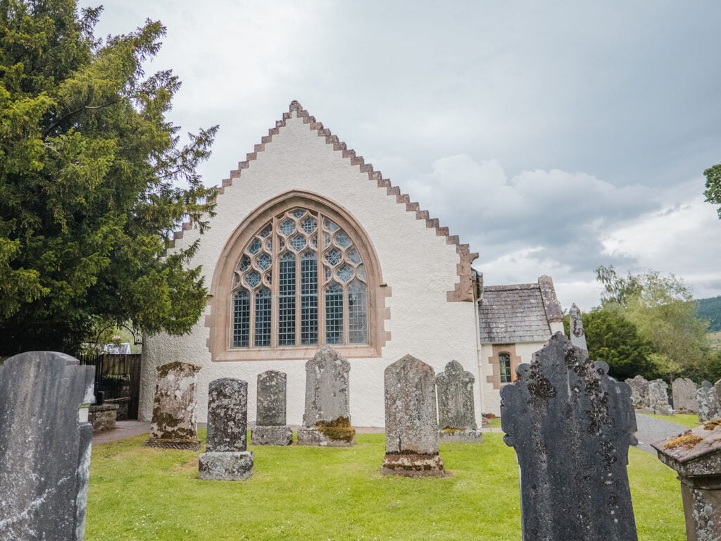 Top Tip: The Fortingall Yew tree is shielded behind a brick wall with windows to preserve it. Even so, branches do overhang the wall. Please be respectful and leave the tree intact. I’d avoid touching the tree at all.