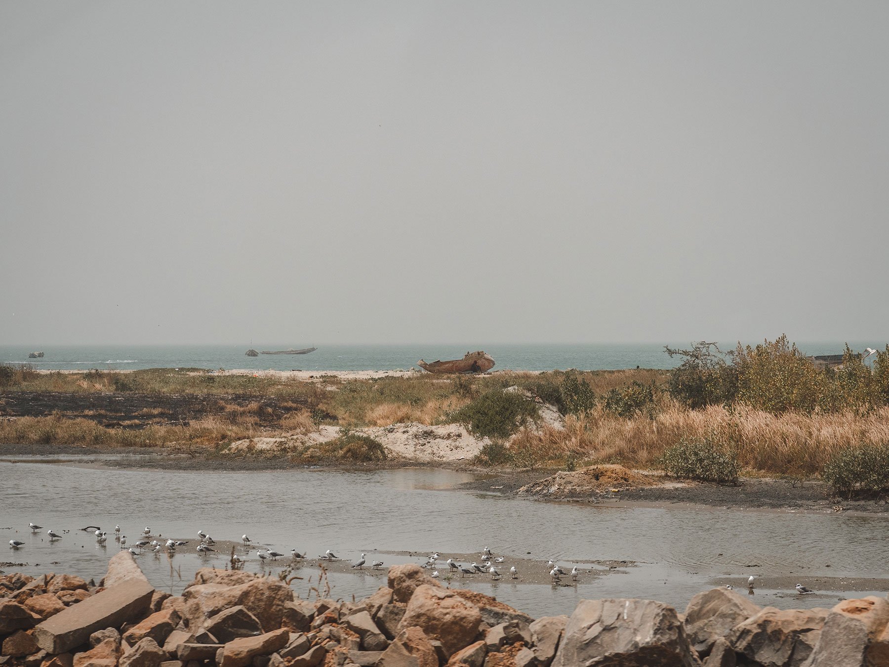 As we left Tanji behind us, for a moment all seemed quiet. To our left was a peaceful lake, home to several birds including great egrets. Behind it were pristine hills of sand and the endless Atlantic ocean.