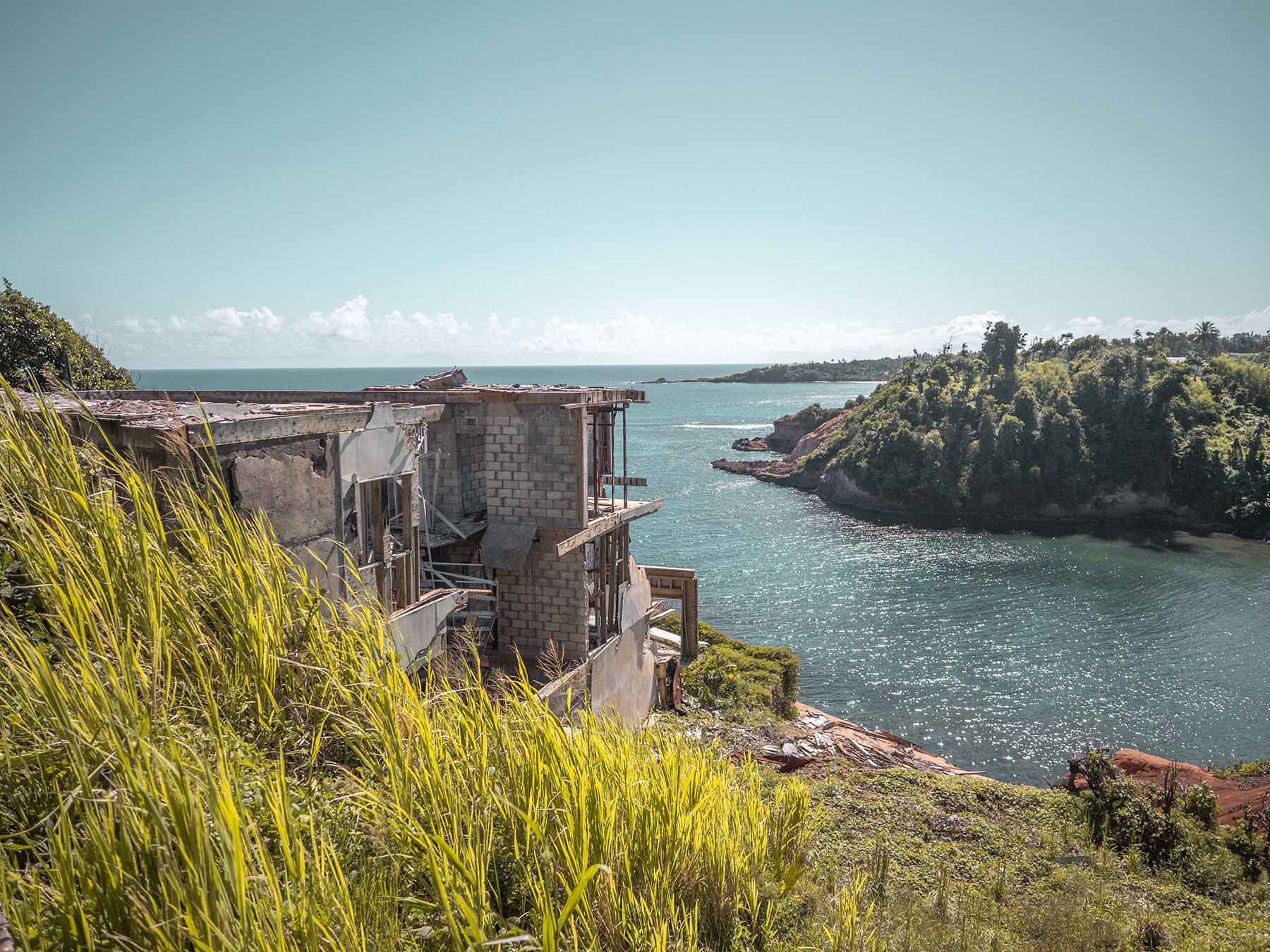 A Wrecked House in Dominica, overlooking the Ocean, the Caribbean