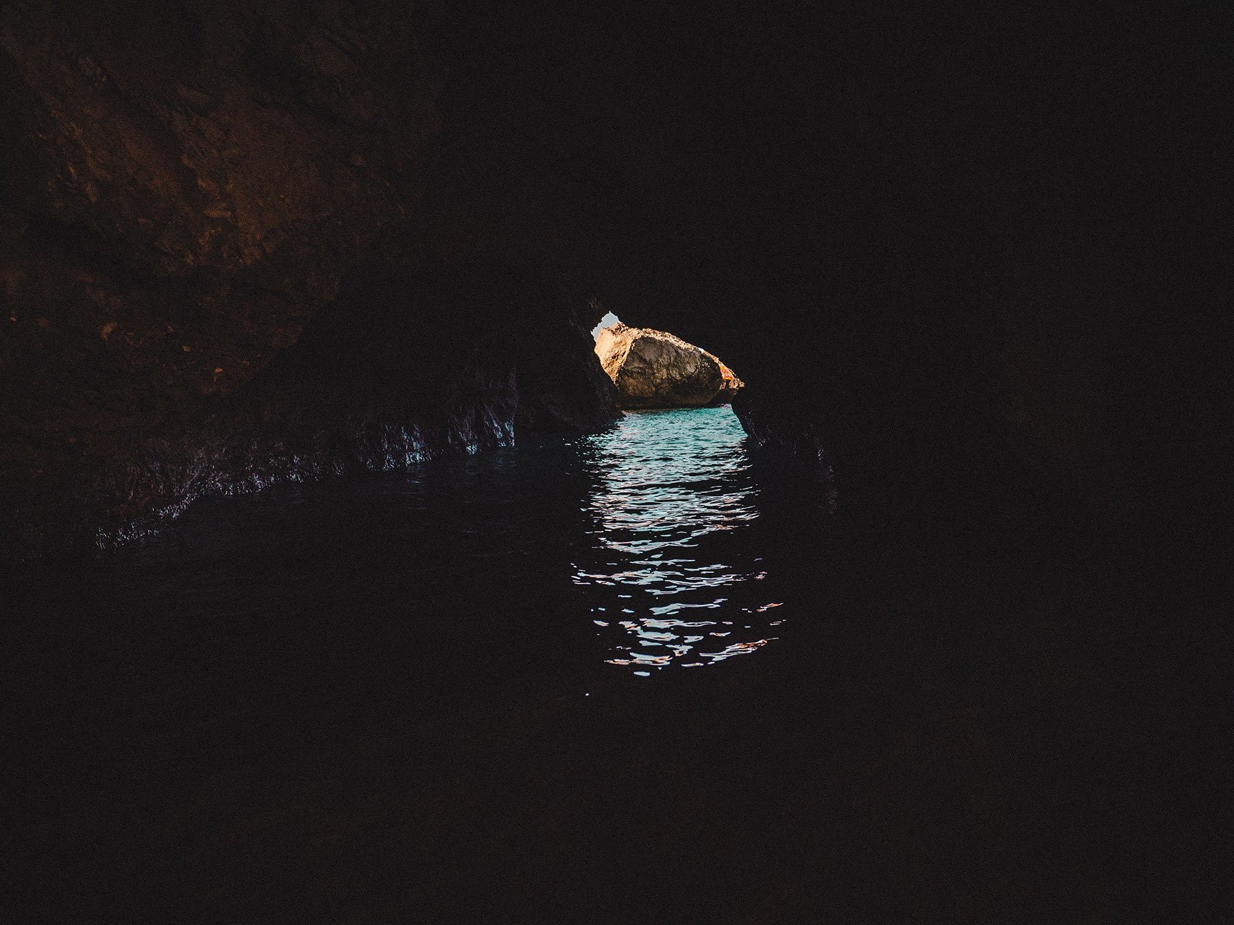 Before we left, we decided to take a peek inside the cave at the edge of the beach. The cave was a small size and had two openings: one onto the beach and the other out to sea. A small pool of water lay within the cave.