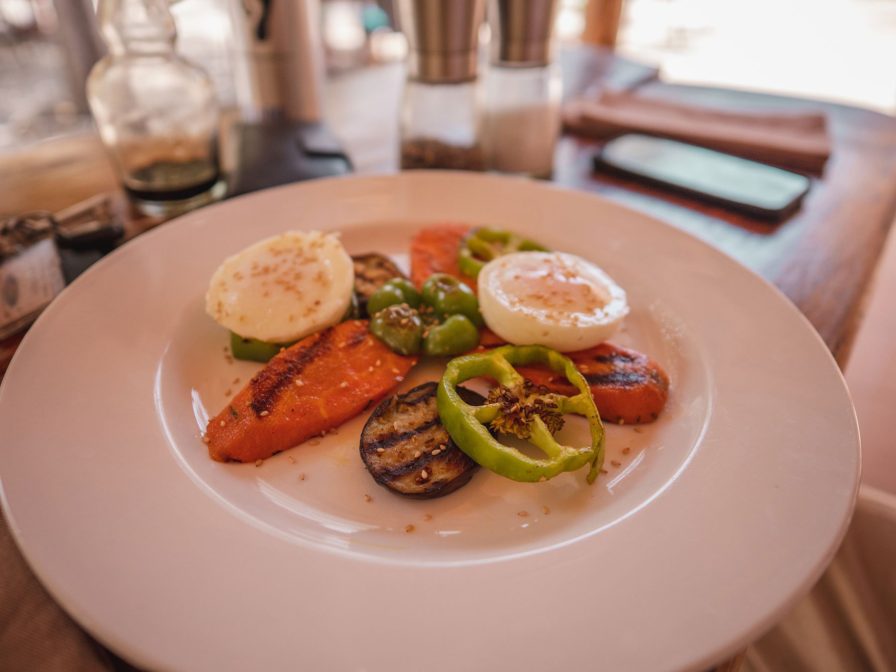 Lewis ordered some poached eggs and roasted vegetables for himself. That also looked pretty good!