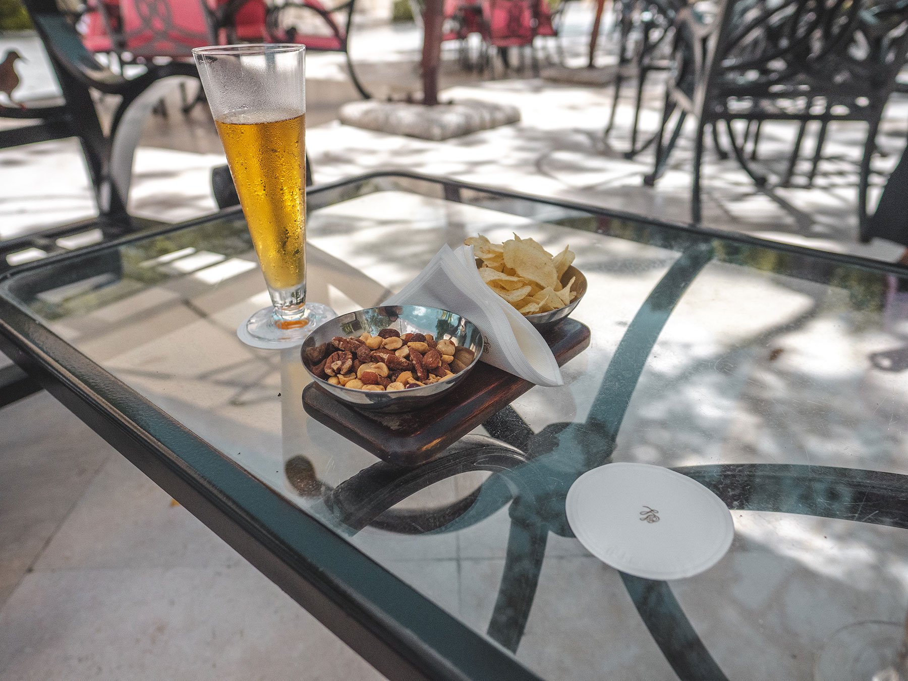 We took a seat and placed an order for a Banks beer, a Pellegrino and a selection of nuts. Banks beer was the local lager in Barbados with the brewery situated in St Michael, not far from where we were staying, in the south of the island. The beer was soothing on my parched tongue. I let out a sigh of satisfaction and sat back into the cream cushions, allowing relaxation to wash over me at last.