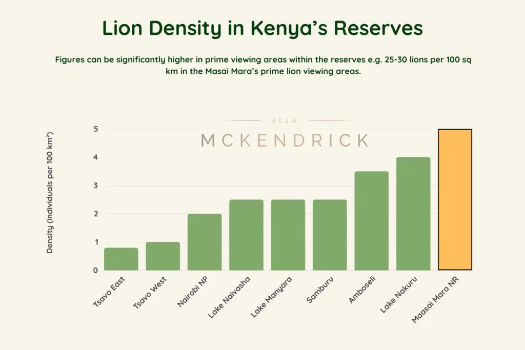 Despite its relatively small size, the Masai Mara has a much higher density of lions compared to the many larger parks in Kenya and Africa.