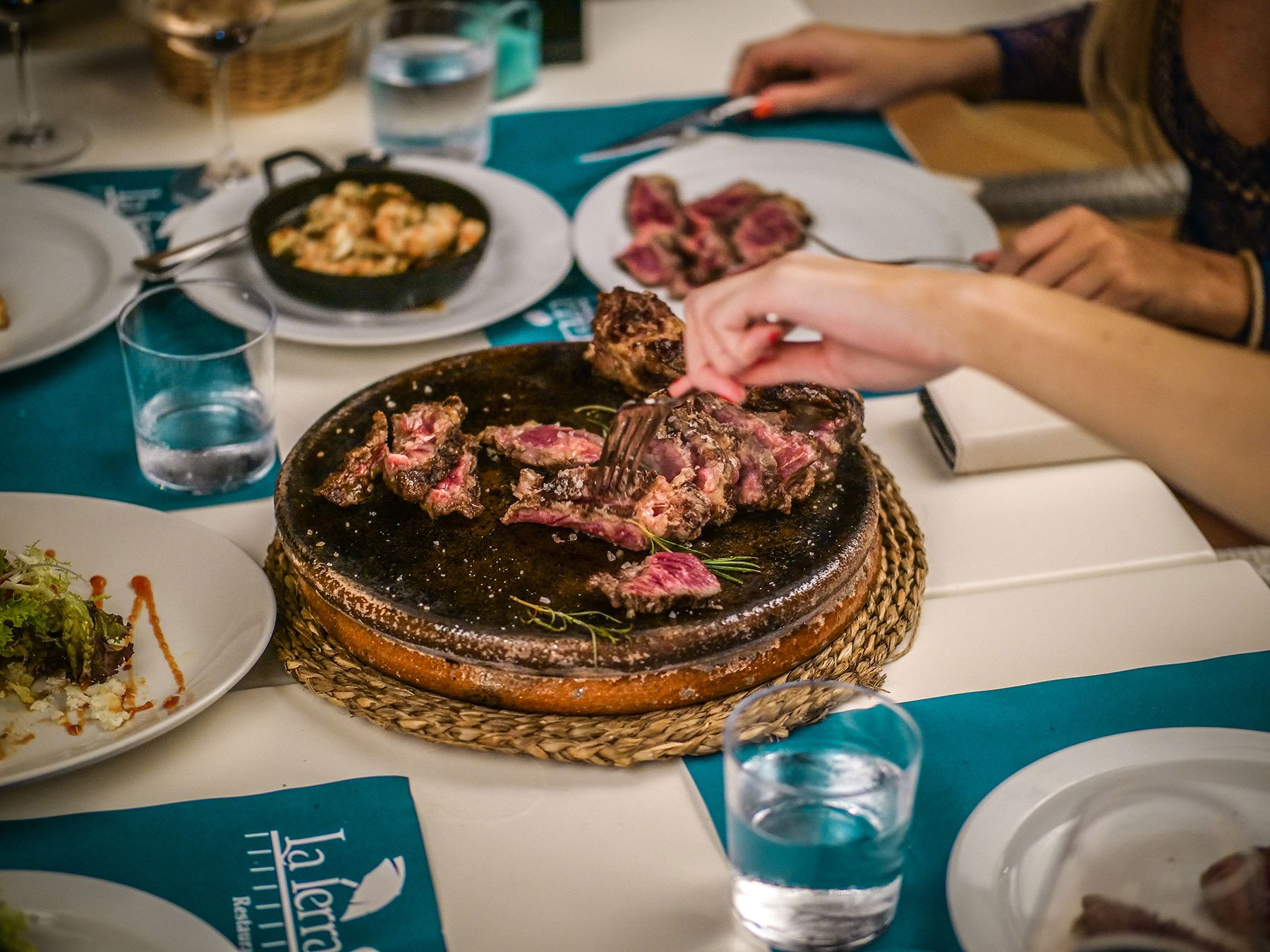 In terms of mains, you are inundated with options from traditional seafood paella, goats cheese salad, rack of lamb and my absolute favourite, the sizzling rib-eye steak. The steak comes out on a hot rock plate and gradually cooks away in front of you. This is perfect as you can grab your steak whenever it is cooked how you like it. I love my steak as rare as you can possibly have it so I grab it literally immediately. But if you allow it time, you can have it as well-done as you like!