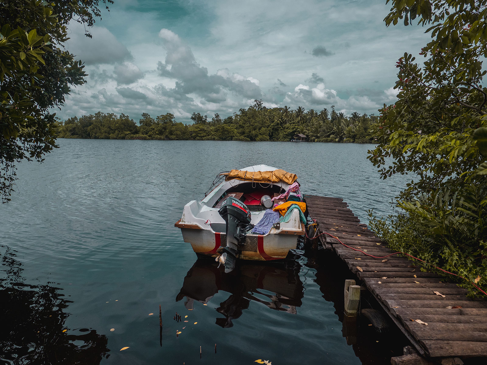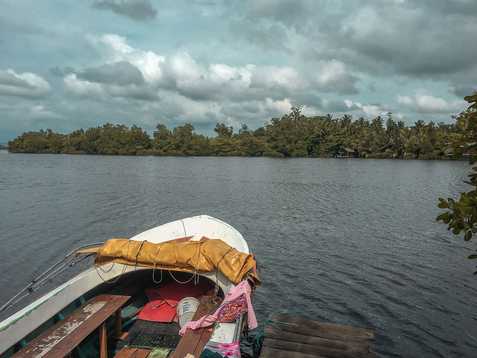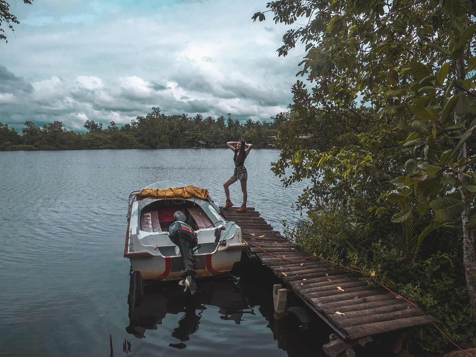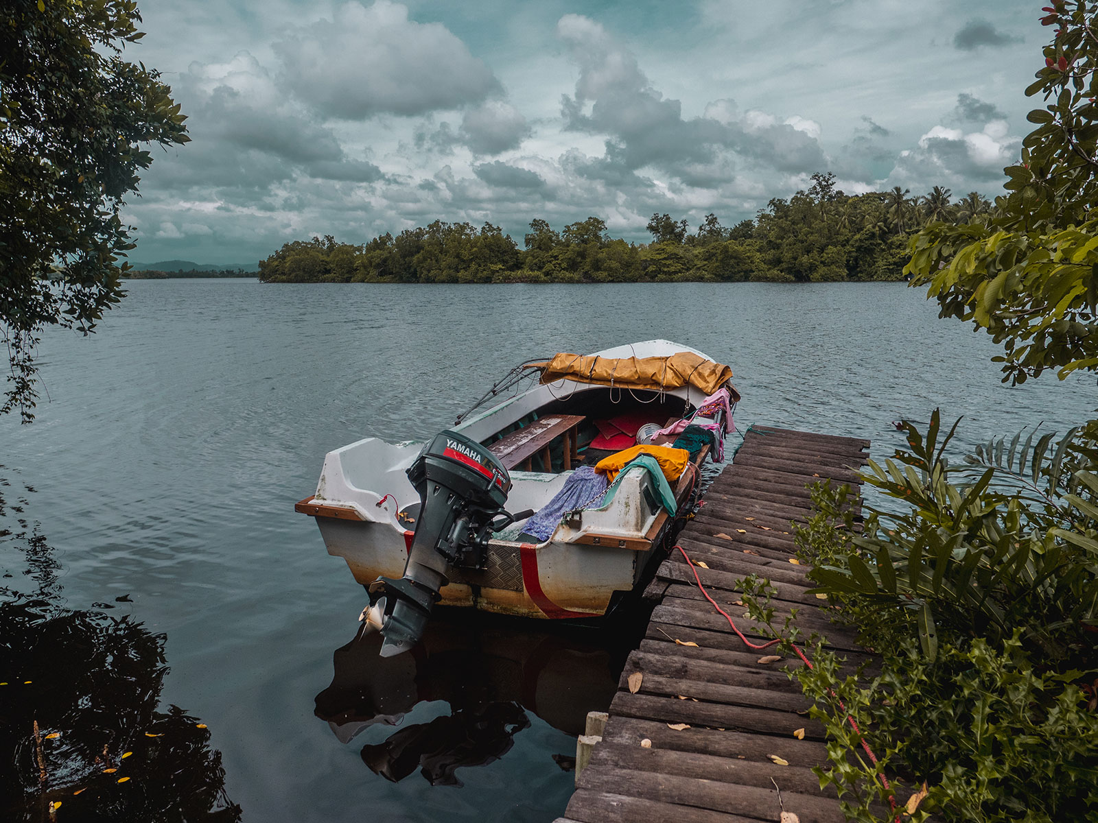By the river was a little wooden jetty, jutting out into the river. Strapped to the jetty was a small white boat which belonged to our AirBnB host. It was the perfect spot to sit and watch the quiet river.