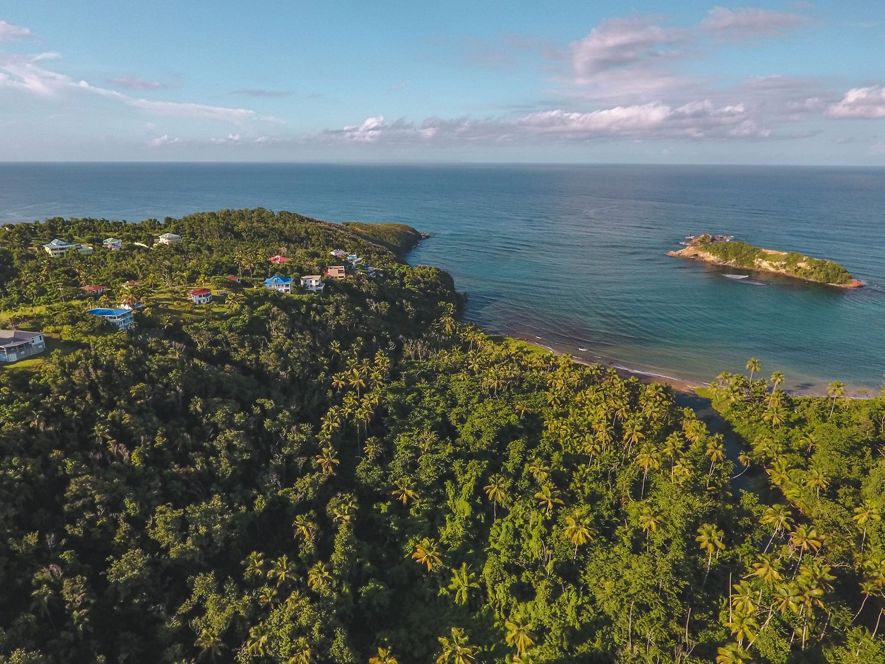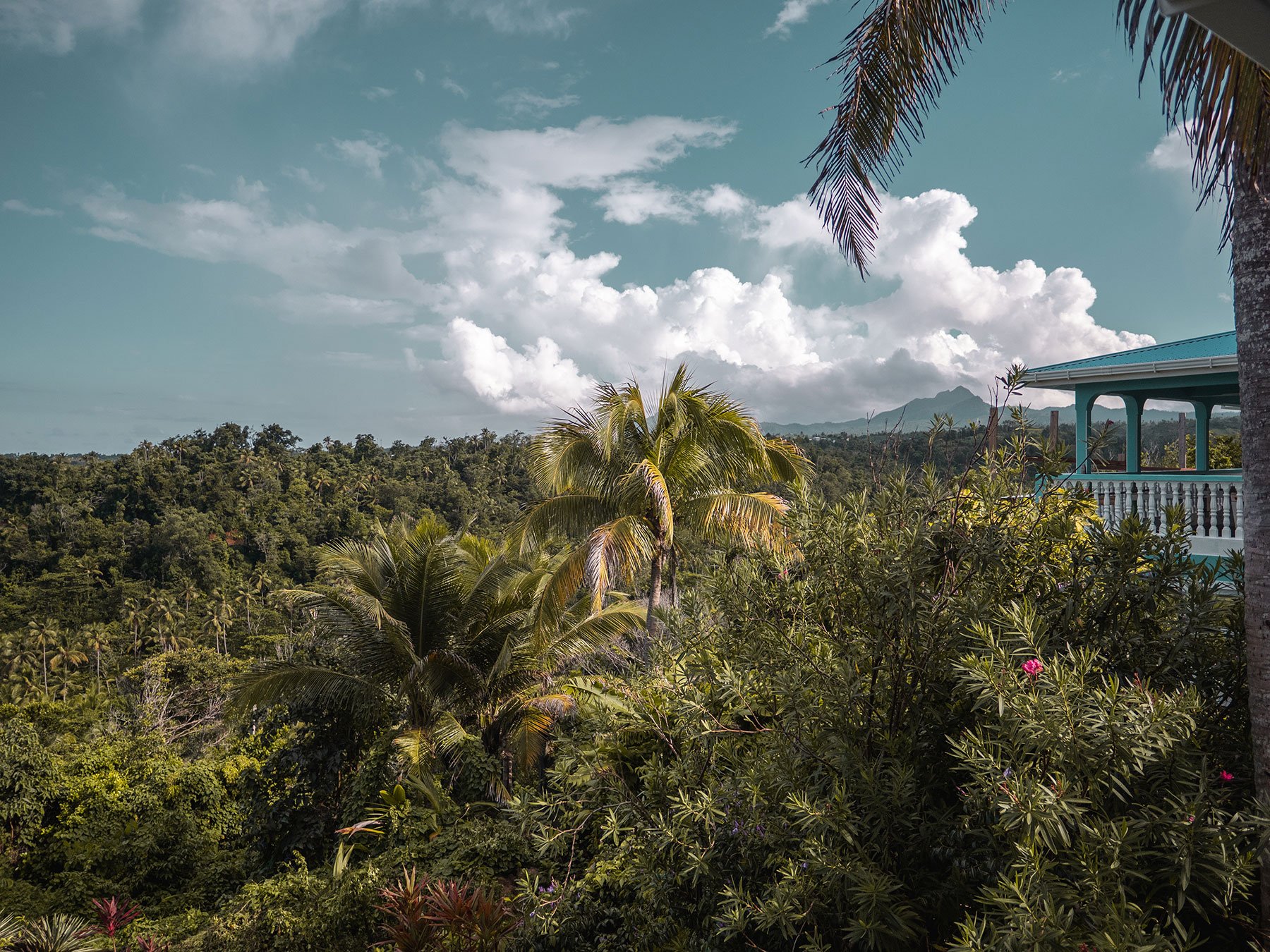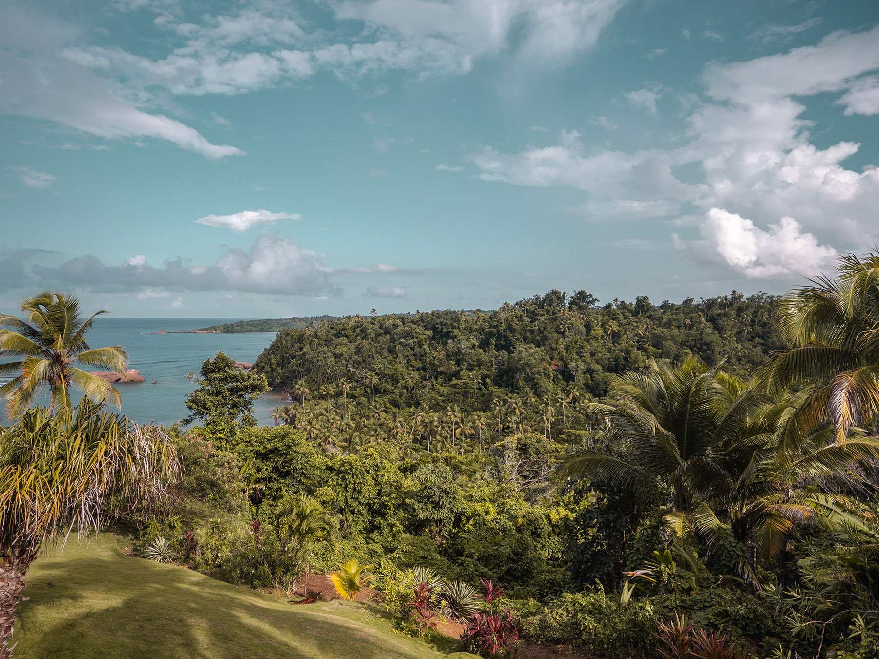 To the left of the panorama was the blue ocean dotted with islands. Waves lapped gently against a swathe of black-sand. A cyan river fed into the ocean before snaking through a forest of lush palms and disappearing from view. To the right was endless jungle and in the far distance we could see the jagged green peaks of the Northern Forest Reserve.
