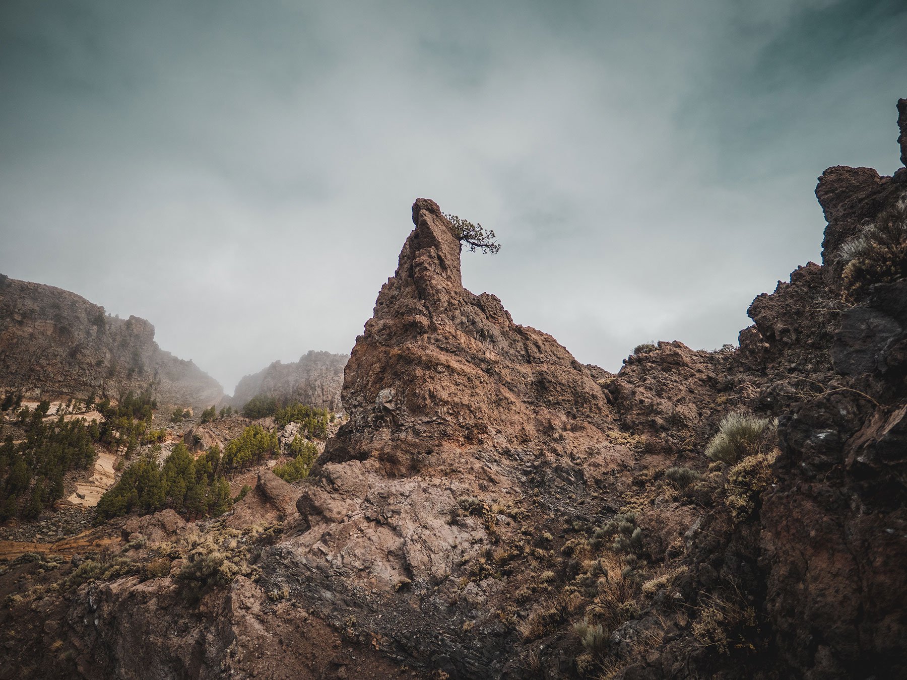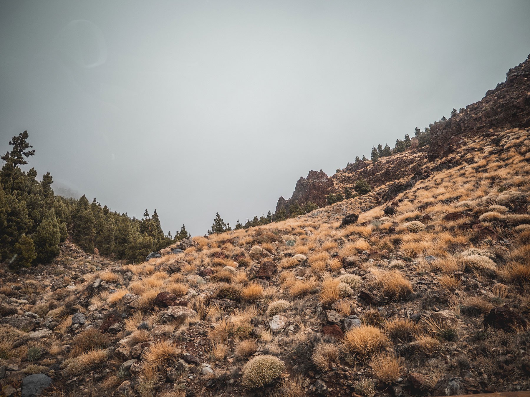 Looming ahead of us was a towering mountain-like structure made up of rock that had been carefully crafted into unique shapes by the elements. Trees grew in patches, clearly oblivious to the vicious winds that battered the rock from the north. Little did I know at this point, I was looking at the wall of the great crater, Las Cañadas.