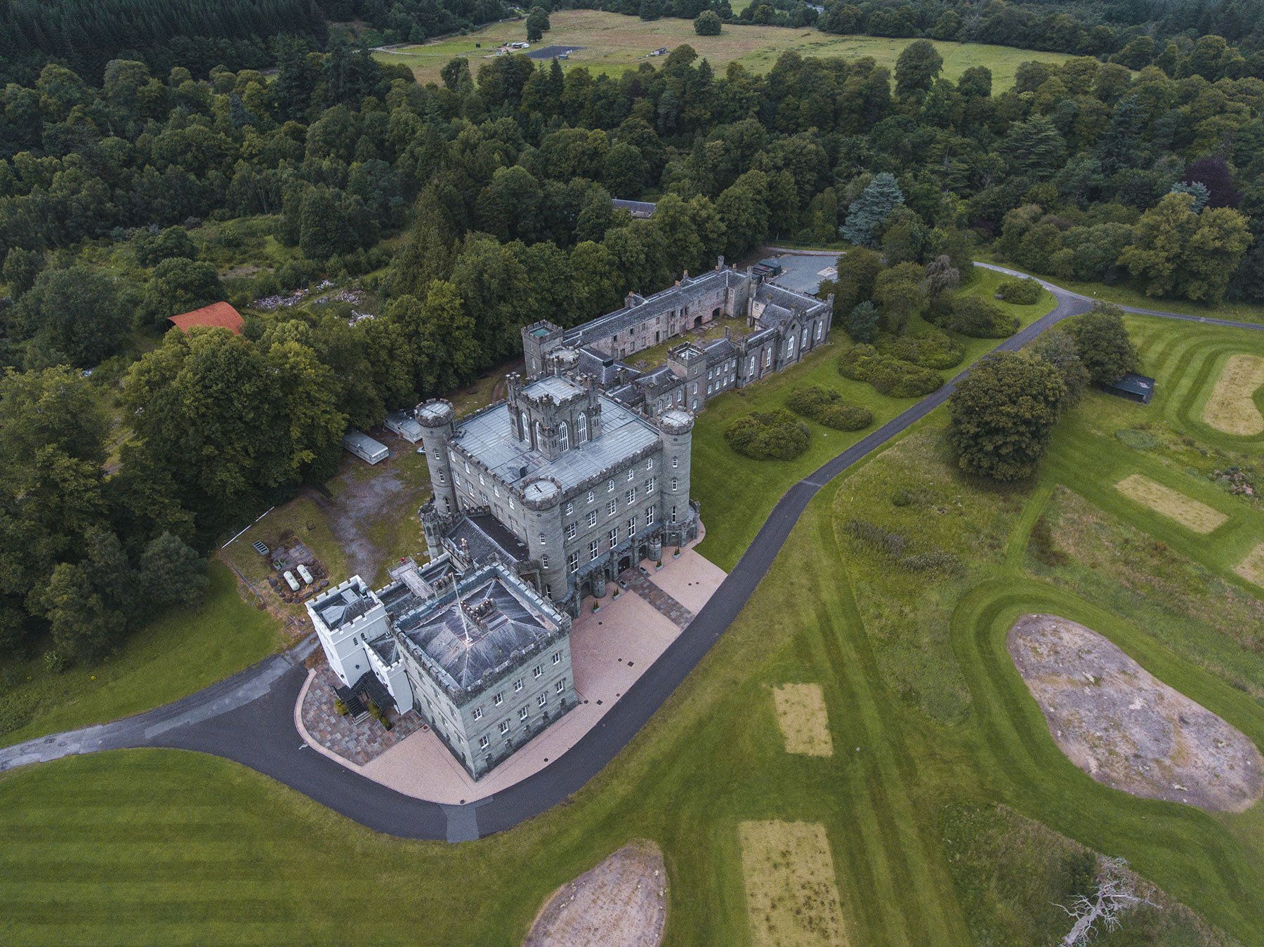 Drone View of Taymouth Castle in Kenmore, Scotland