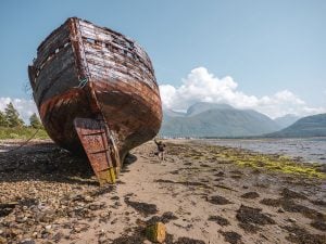 Ella McKendrick with the Corpach Shipwreck in Fort William, Scotland