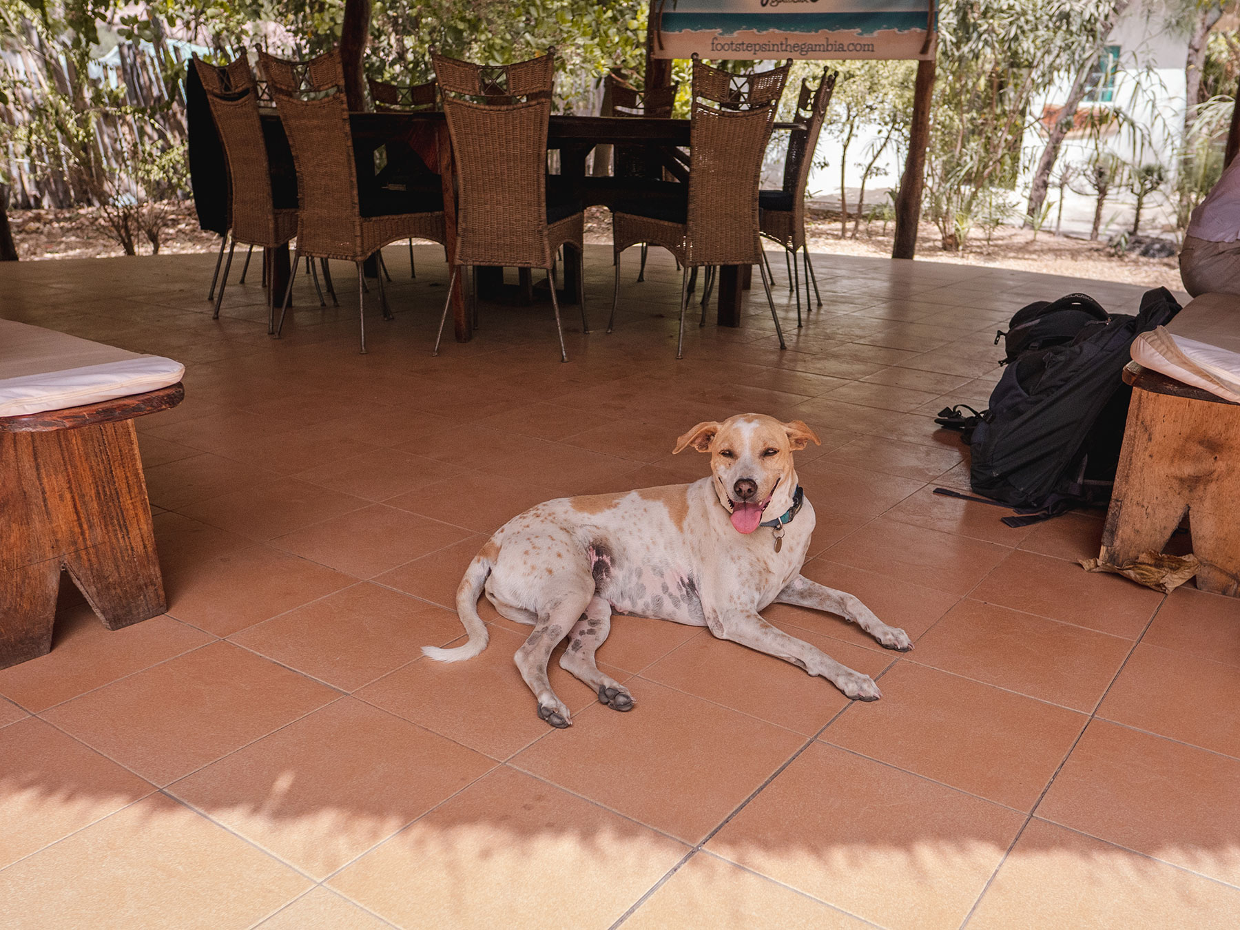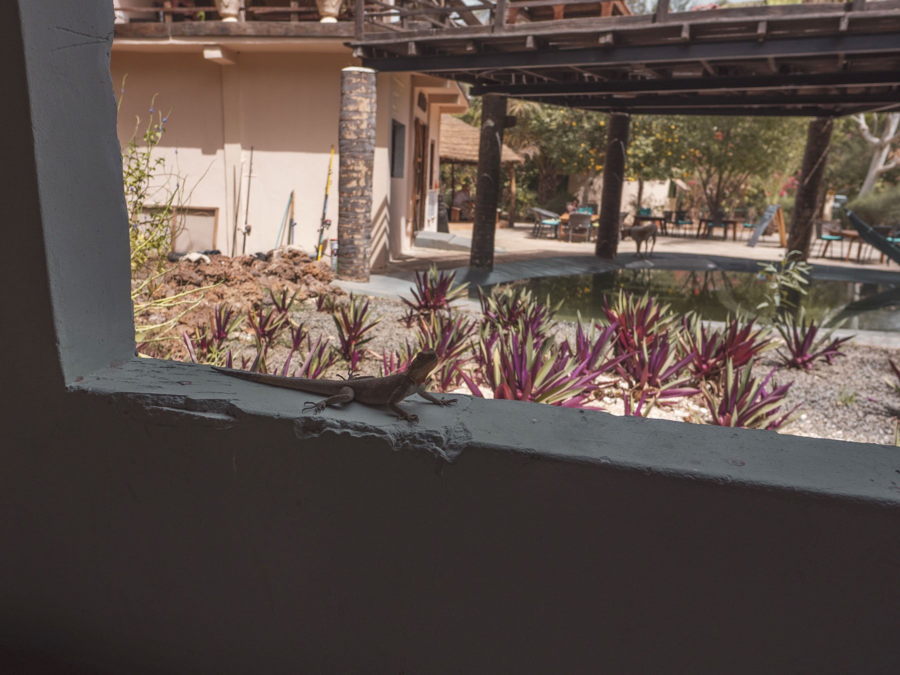 After our failed attempt to withdraw cash from Gunjur, we stopped by at our accommodation for some lunch. Stepping into the small eco-complex felt like taking a step into paradise. The trees were alive with birdsong and the humming of insects. Otherwise it was tantalisingly quiet.