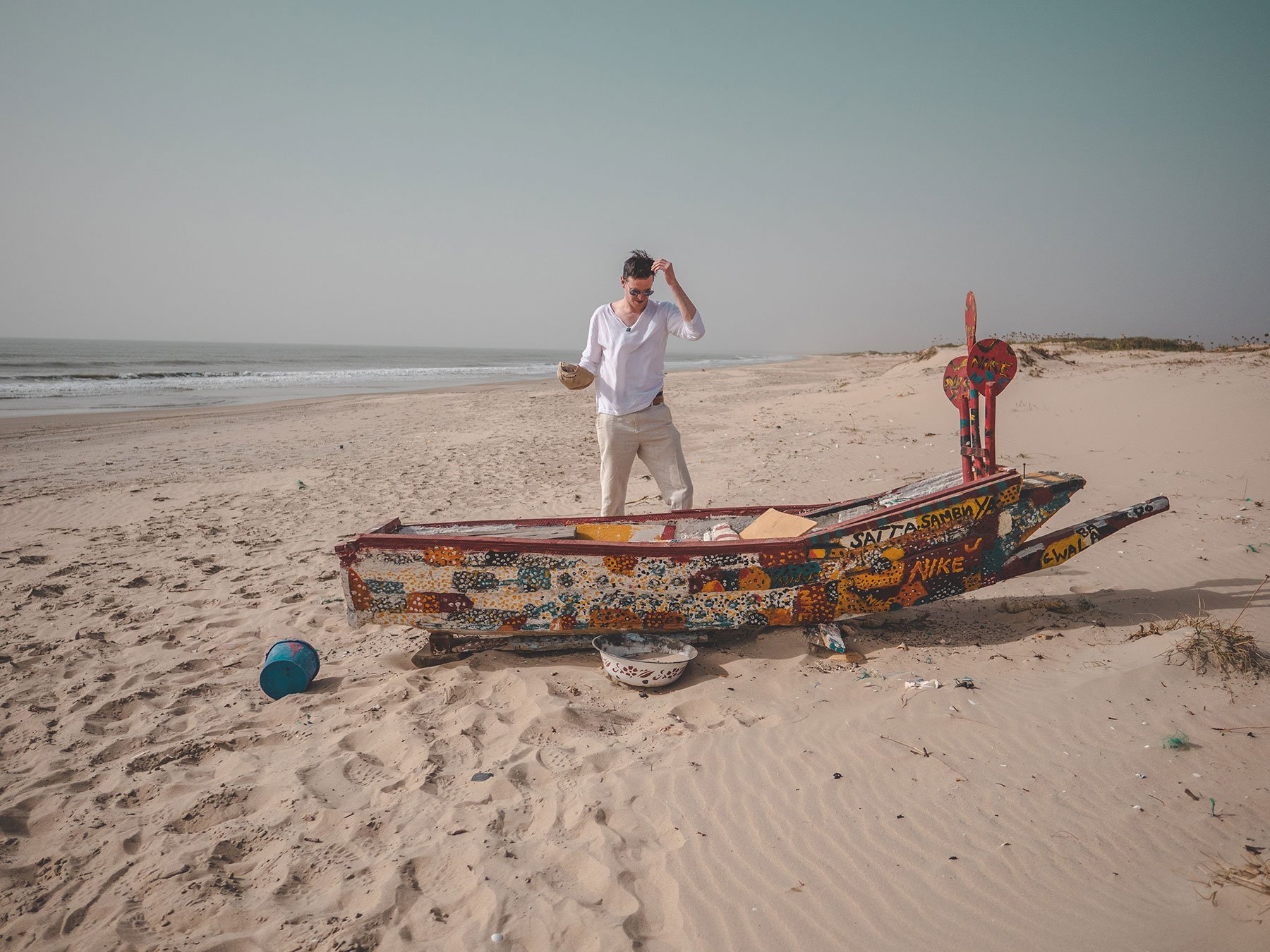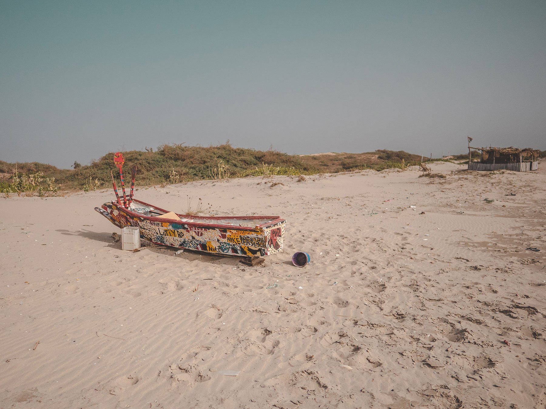 We came across a small wooden boat sitting in the sand. It was covered with beautiful painting in various colours.