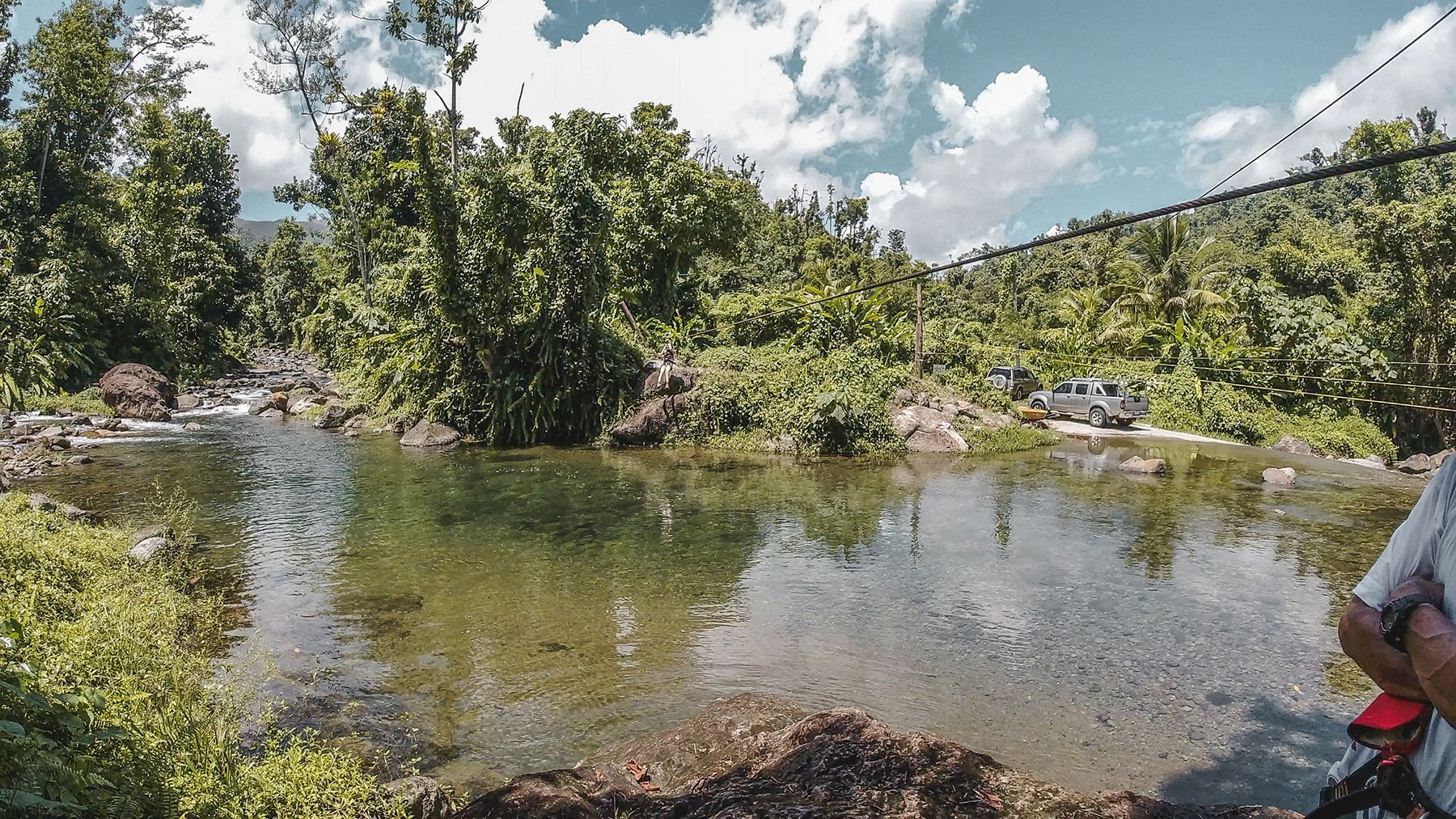 I was surprised when we reached the river crossing. It seemed to appear far quicker than I remembered. Perhaps Lewis was accustomed to driving down narrow jungle trails at this point.