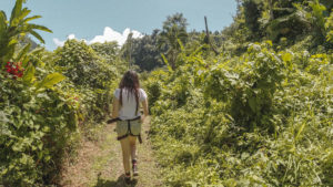 Ella McKendrick trekking through the rainforest in Dominica, the Caribbean