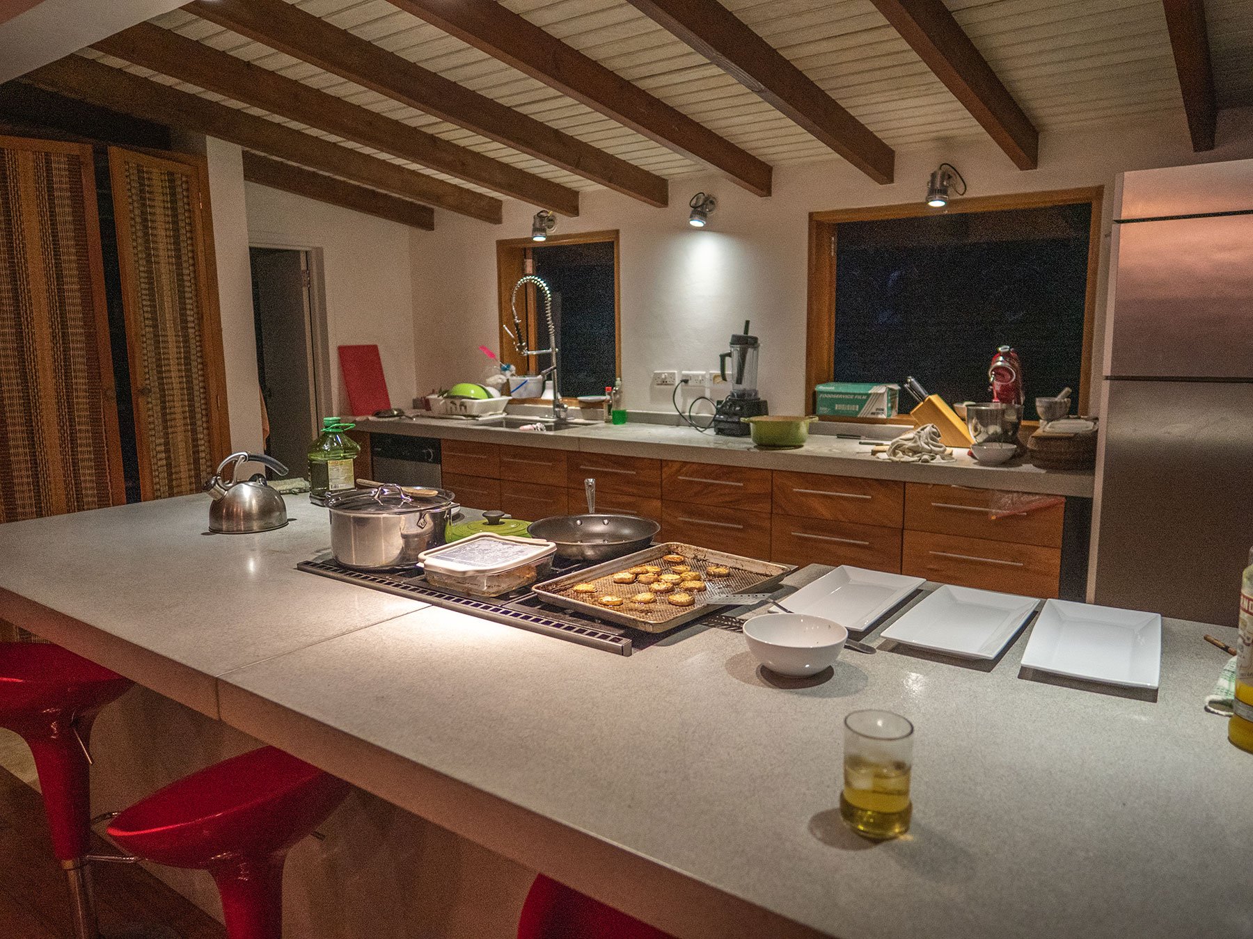 Living and Kitchen area at Banana Lama Eco-Villas in Rosalie, Dominica