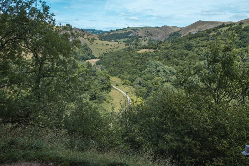 You will climb back down from the top of Thor’s Cave, following the same trail on which you climbed, past Thor’s Cave and then back down into the forest before walking back up the Manifold Way to the roadside car park.