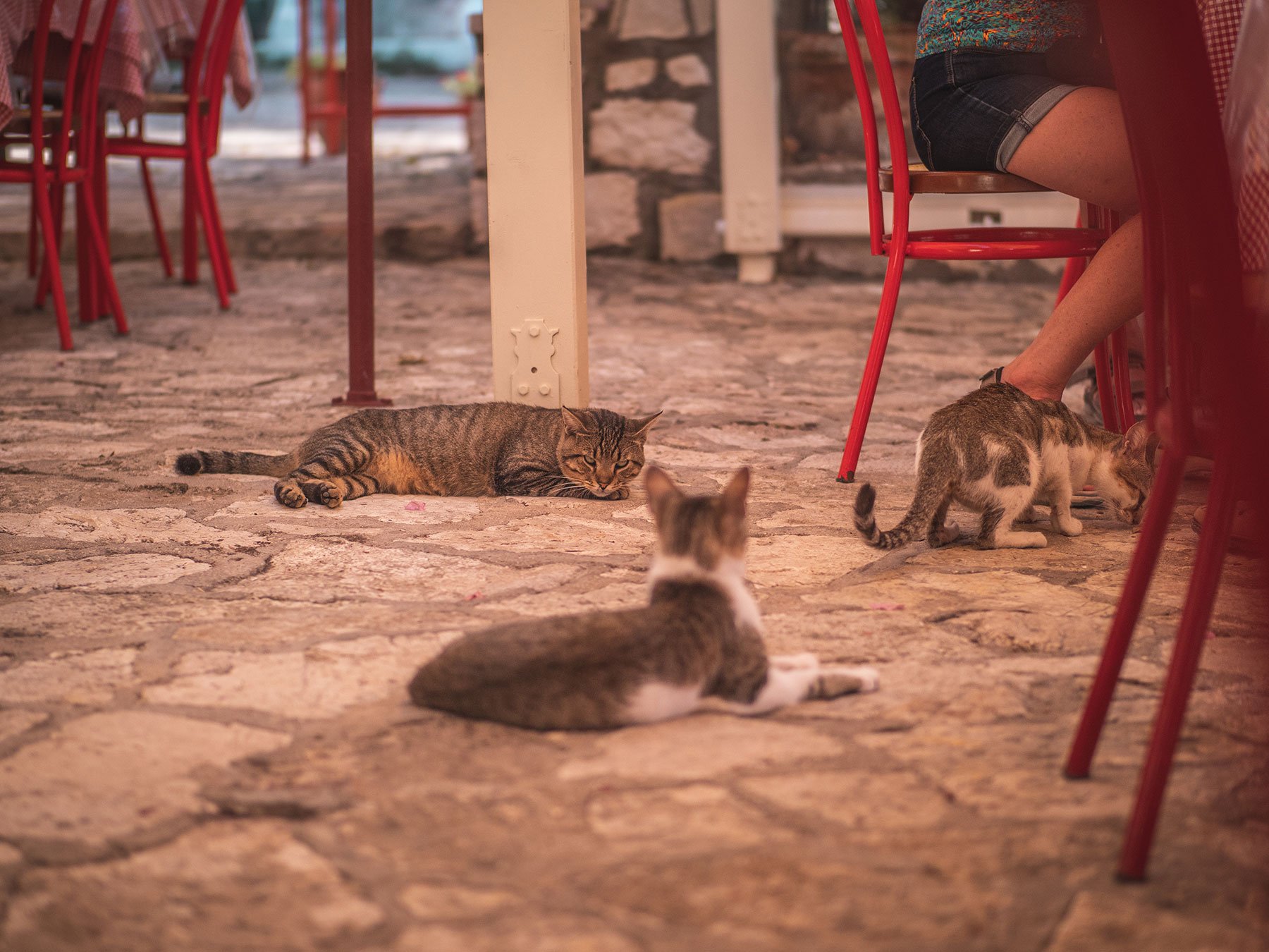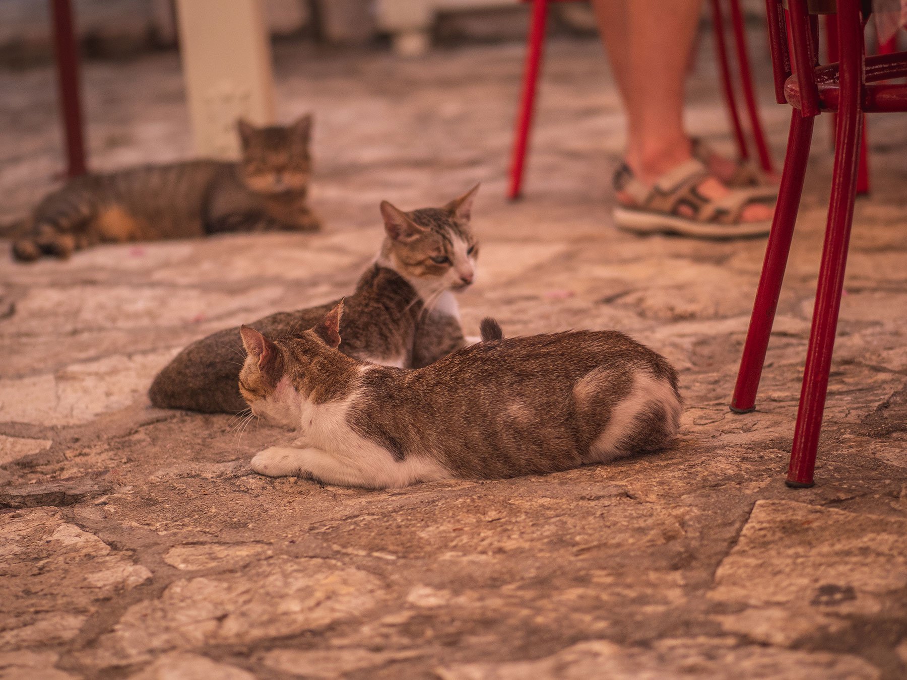 First impressions of the restaurant were good. As we sat down in the middle of the square, we found ourselves surrounded by five furry felines.