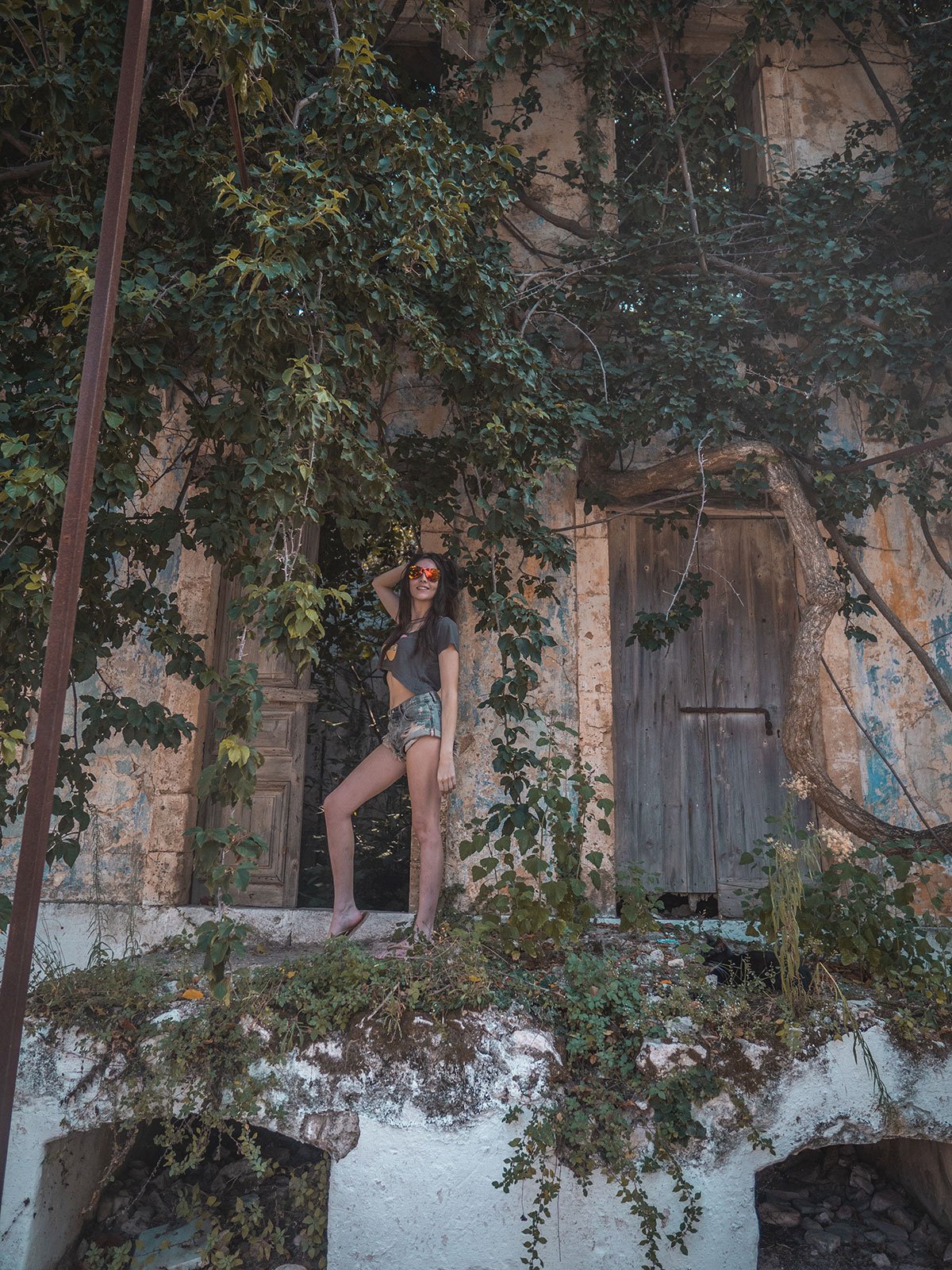 I couldn’t resist clambering up the stone steps to the rickety front door of one of the buildings. Mosquitos swarmed my legs as I stepped over foliage and rubble. On my way to the door, I passed a black cat, sitting calmly amongst the undergrowth. Tentatively, I placed one hand on the splintered door and peered inside. The air inside was stifling and humid. Before me was what I can only describe as a forest. Thick bushes and trees rose up from the floor before filling up the once empty space with a tangle of branches and vines.