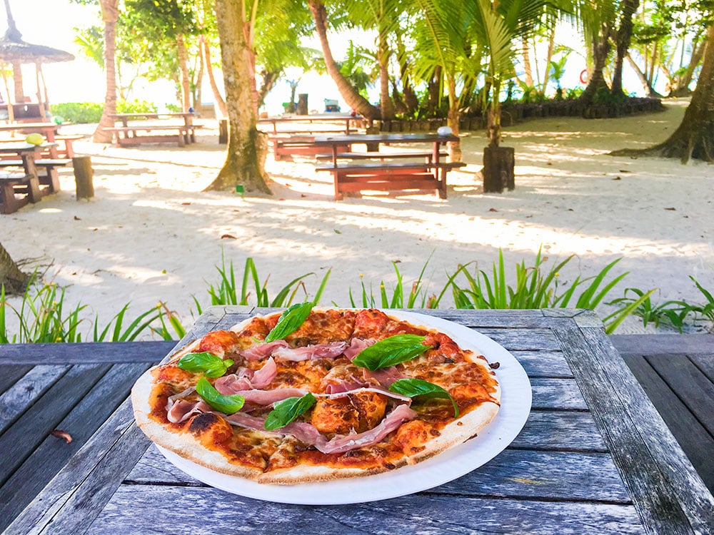 Pizza at Four Seasons resort on Mahe island, Seychelles